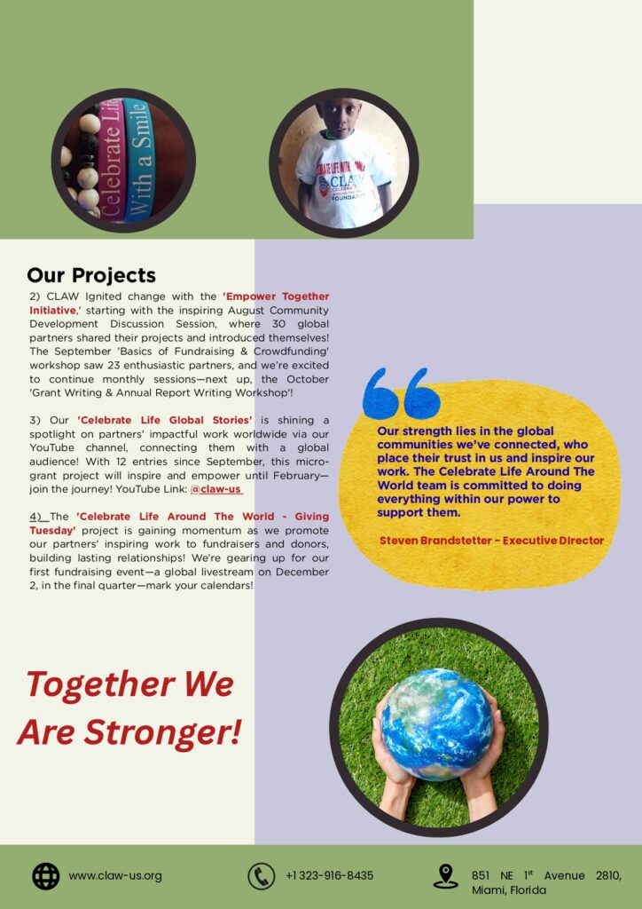 Here is CLAW’s QUARTER 3 Newsletter for the year 2025. Together we are stronger.